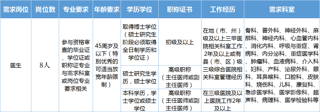 我们目前有八个医师或学科带头人职位,涵盖骨科、心血管医学、神经外科和肿瘤学等许多重要领域。